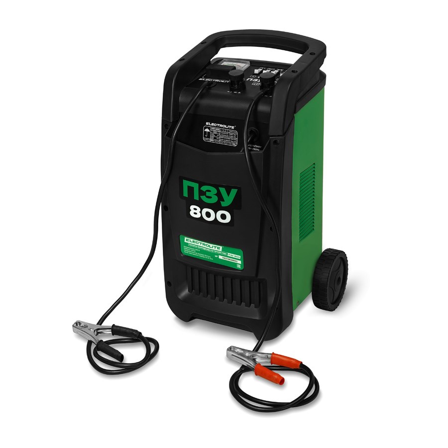 Пуско-зарядное устройство Electrolite ПЗУ-800 100-1000 А/ч — купить в городе [city]. Цена 18750 руб. Ток зарядки, макс.: 90 Ампер; Функция пуска; Пусковой ток, макс.: 630 Ампер; Ёмкость аккумулятора, макс.: 1000.0 Ач.