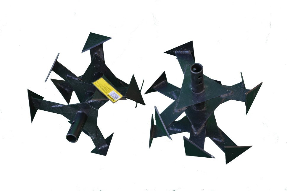 Главная особенность «гусиных лапок» - треугольная форма концов ножей, обеспечивающая достаточное крошение и перемешивание почвы. Такая сплошная конфигурация обусловлена необходимостью прочности при работе на твердом грунте, целины, ее культивирования. Подходит для работы с участками земли с крупными комьями.