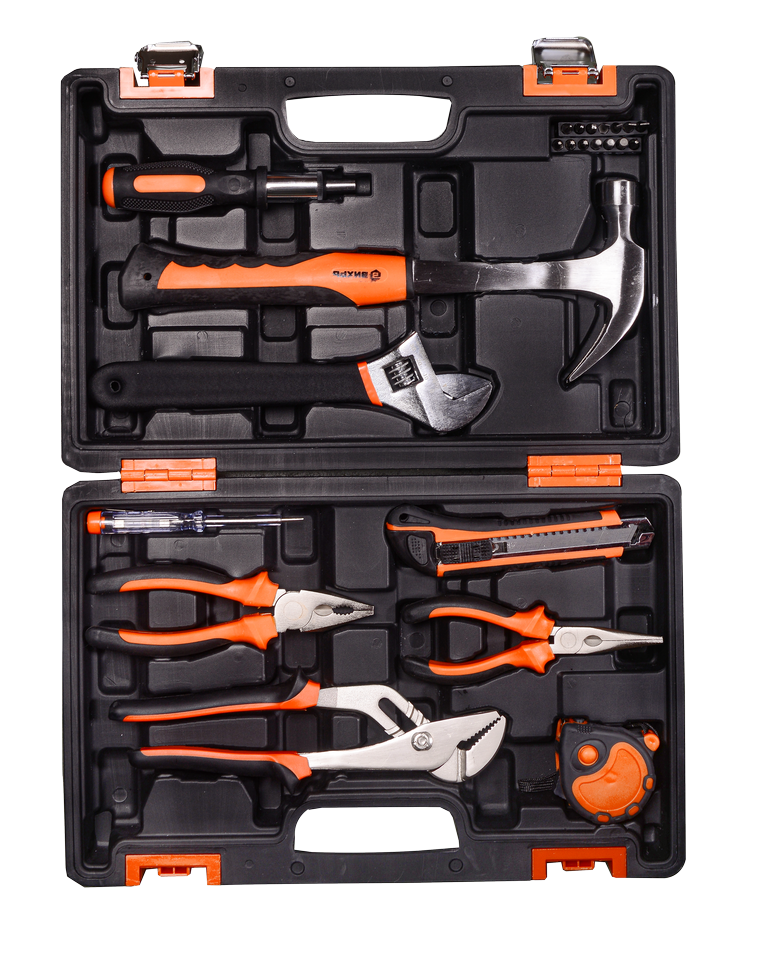 Набор инструментов пригодится дома, на даче, в гараже. Все предметы размещены в ударопрочном пластиковом кейсе.