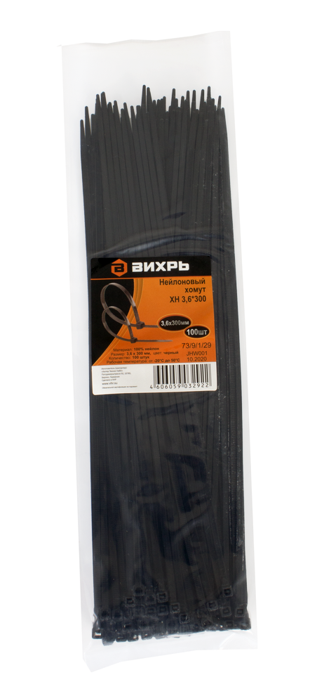 Нейлоновый хомут ХН 3,6х300 Ч