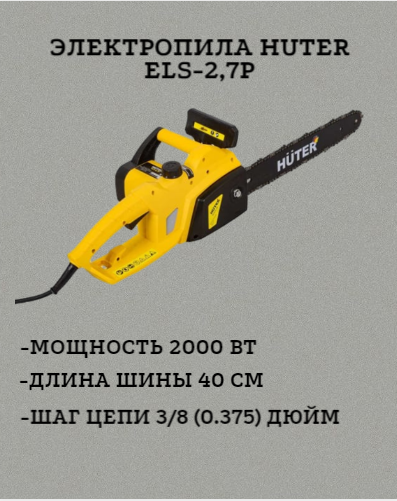 Электропила HUTER ELS-2,7 предназначена для бытового использования: распиловка бревен, валка садовых деревьев, обрезка сучьев. Благодаря обрезиненной рукоятке держать такой агрегат в руках удобно и комфортно. Привод цепи осуществляется за счет электродвигателя, который работает от сети переменного тока 220В.