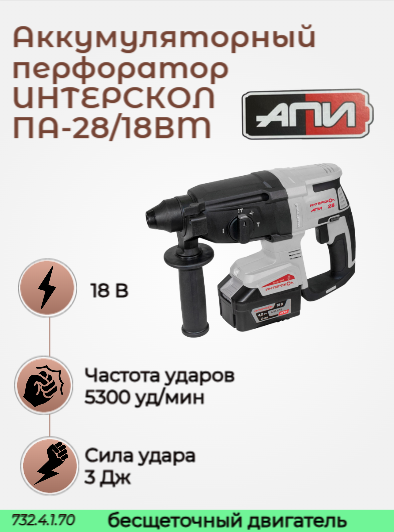 Бесщет аккум перфоратор ПА-28/18ВМ АПИ 18В, ИНТЕРСКОЛ