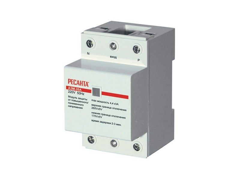 Выключатель автоматический РЕСАНТА 40A предназначен для защитного отключения потребителей электроэнергии суммарной мощностью не более 6,6 кВА при повышении напряжения в сети электропитания переменного тока более 265 В или снижении до уровня менее 170 В. Включение происходит автоматически после установления величины напряжения в пределах указанного диапазона с задержкой 2-3 минуты. Номинальные параметры электросети: 220 В, 50 Гц.