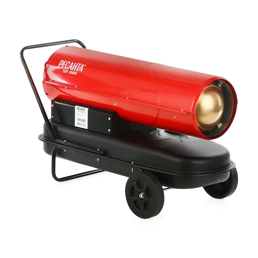 Дизельная тепловая пушка РЕСАНТА ТДП-50000 - функциональный обогреватель с прямым нагревом для отопления складских, строительных и других помещений.
