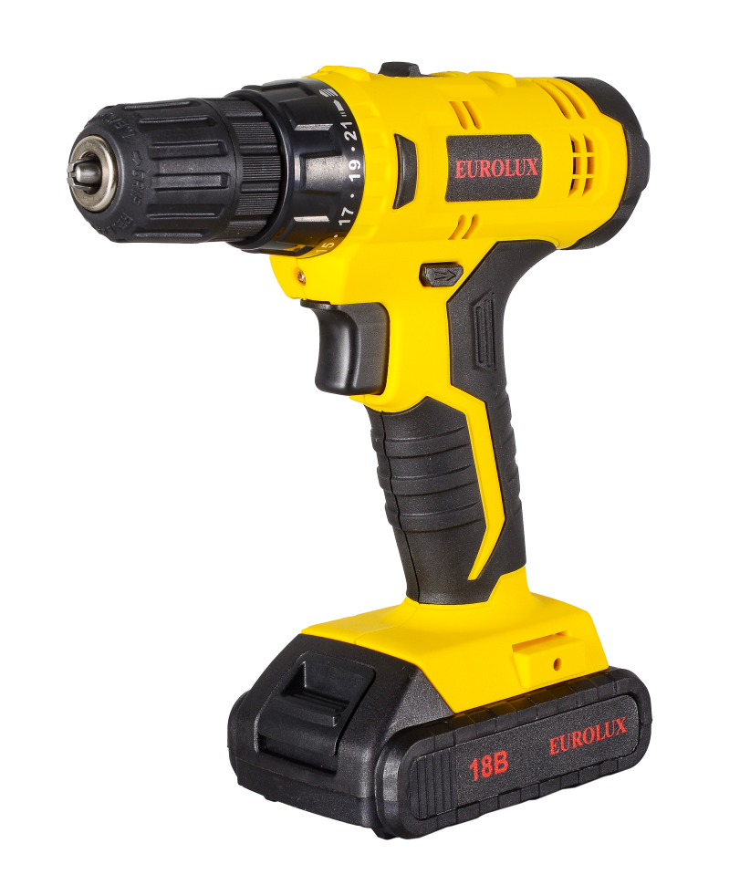 Аккумуляторная дрель-шуруповерт Eurolux ДА-18/2Li – ручной электроинструмент с регулируемым крутящим моментом, предназначенный для закручивания и откручивания шурупов, саморезов, винтов и других видов крепежных изделий, а также сверления отверстий в различных конструкционных материалах.