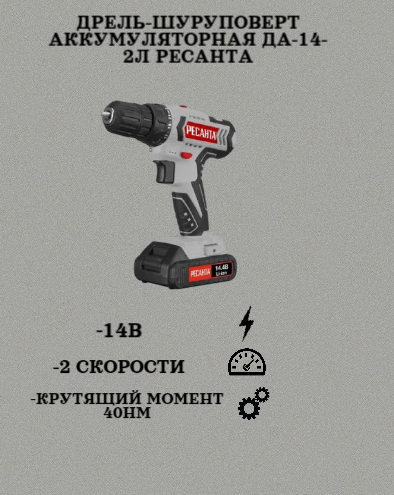 Дрель-шуруповерт аккумуляторная ДА-14-2Л Ресанта