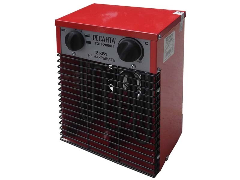 Тепловая электрическая пушка РЕСАНТА ТЭП-2000Н предназначена для вентиляции и обогрева жилых и производственных помещений, складов, гаражей, а также для обогрева и сушки в строительстве. Прибор относится к тепловым пушкам компактного типа. Нагревательный элемент - трубчатый. Данная модель рассчитана на питание от электросети переменного тока частотой 50 Гц, номинальным напряжением 220-230В (однофазная). Устанавливается на полу.Обогреватель оснащен регулировкой режимов работы (мощности):