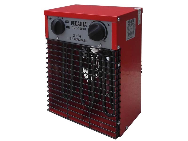 Тепловая электрическая пушка РЕСАНТА ТЭП-3000Н предназначена для вентиляции и обогрева жилых и производственных помещений, складов, гаражей, а также для обогрева и сушки в строительстве. Прибор относится к тепловым пушкам компактного типа. Нагревательный элемент - трубчатый. Данная модель рассчитана на питание от электросети переменного тока частотой 50 Гц, номинальным напряжением 220-230В (однофазная). Устанавливается на полу.Обогреватель оснащен регулировкой режимов работы (мощности):