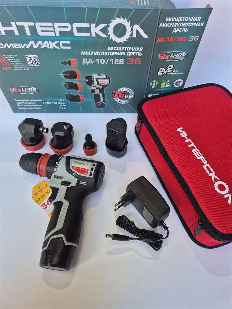 КомбиМАКС бесщеточ аккумулят дрель-шуруповерт АПИ-Т 12В, 36 Нм, 2 АКБ 2,0 Ач, ЗУ, 4 насадки в компл