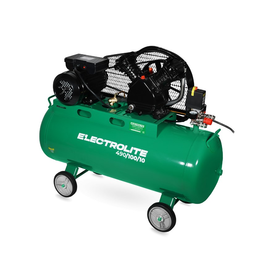 Компрессор Electrolite 490/100/10 — купить в интернет-магазине Electrolite [city] по цене 31500 руб. С доставкой по России. Напряжение: 220 Вольт; Мощность (кВт): 2.2 кВт; Производительность на входе: 490 л/мин; Объем ресивера: 100 л; Рабочее давление: 10
