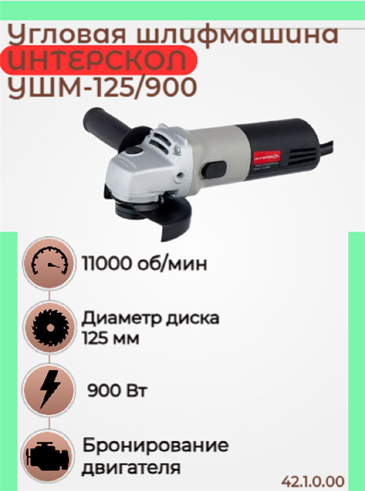 Малая угловая машина УШМ-125/900, 900 Вт, 1,9 кг с 11000 об/мин.