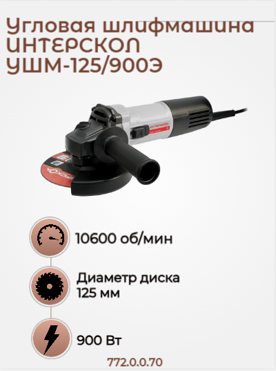 Малая угловая машина УШМ-125/900Э, 900 вт, 1,7 кг, 11000 об/мин., регулировка оборотов.