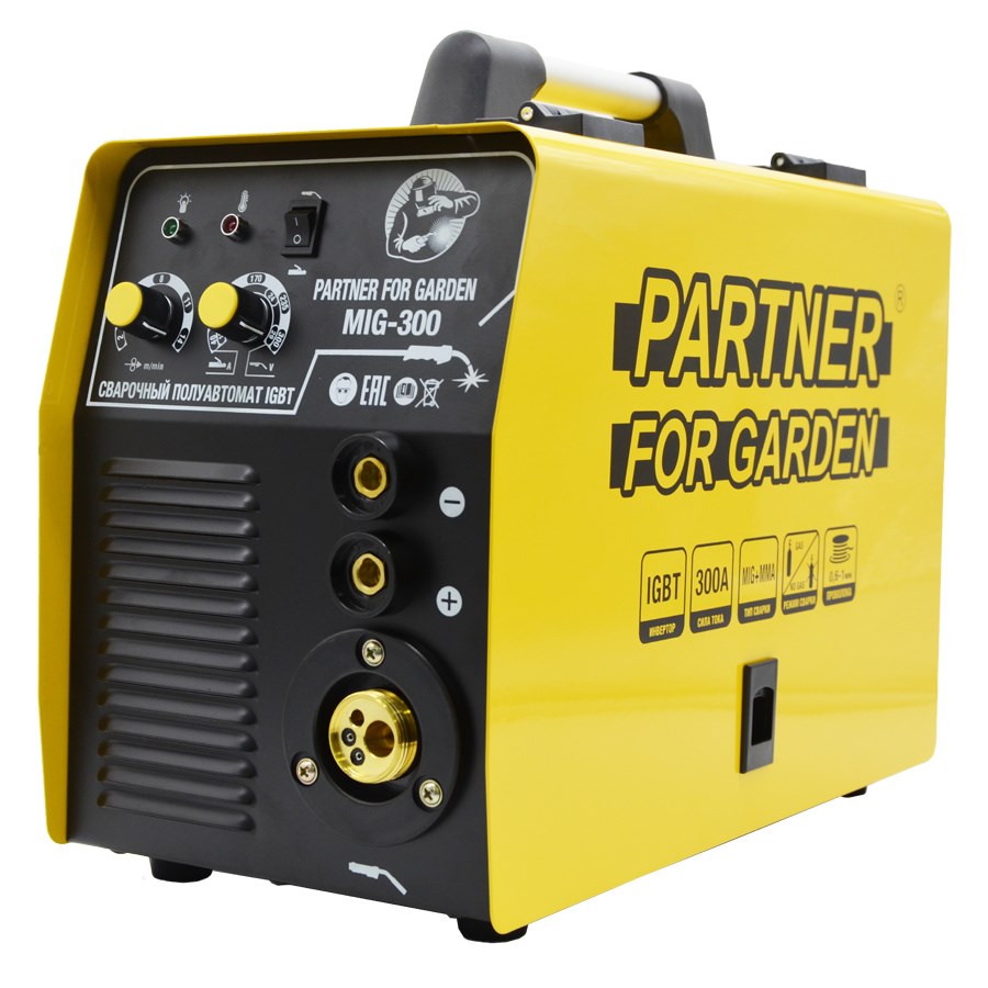 Полуавтомат Partner for garden MIG-300 MIG/MAG/MMA — купить в городе [city]. Цена 16500 руб. Напряжение сети: 220 Вольт; Тип сварки: полуавт./дуговая; Макс. сварочный ток MIG/MAG: 300 Ампер.