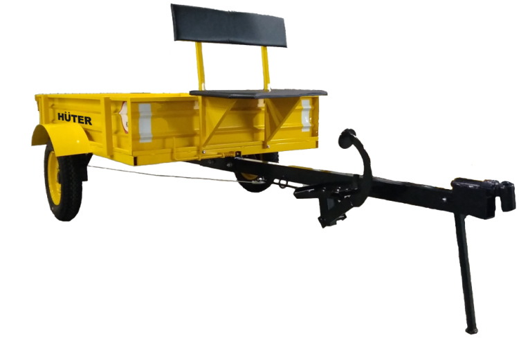 Прицепы для мотоблоков - предназначены для перевозки сельскохозяйственных, строительных и прочих грузов. Для размещения пользователя предусмотрено сидение. Прицеп оснащен пневматическими шинами, ленточными тормозами и разборной рамой. Преимуществом прицепов HUTER является откидной задний борт и функция самосвального опрокидывания борта.Прицепы поставляются в трёх вариантах: