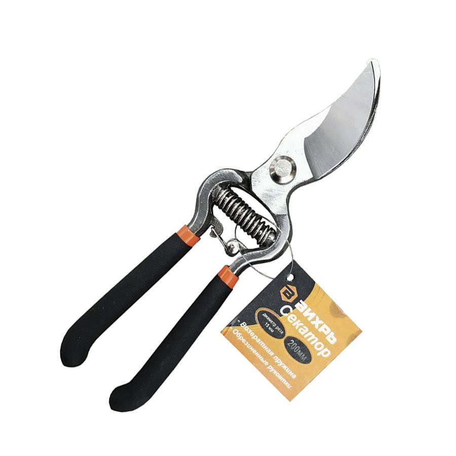 Секатор ВИХРЬ 200мм, возвратная пружина, обрезиненные рукоятки