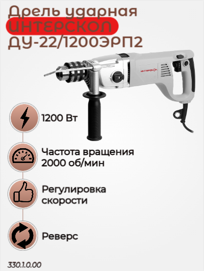 Сетевая дрель ударная ДУ-22/1200ЭРП2, макс. сверления в древесин 50 мм, 10200 вт.
