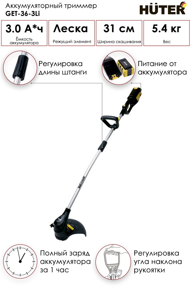 Аккумуляторный триммер GET-36-3Li Huter
