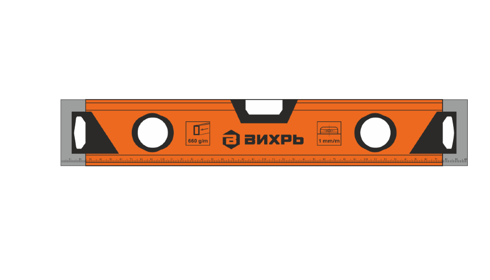 Усиленный корпус уровня изготовлен из упрочненного прямоугольного алюминиевого профиля.